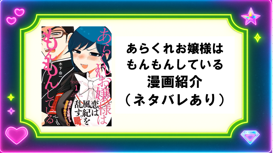 以上『あらくれお嬢様はもんもんとしている』の漫画紹介でしたっ。告白が最高なのはもちろん、付き合ってからが本番。まだ手つなぎも初キスもこれからの関係だから、クラスにバレた時のリアクションや、どんなシチュでキスするのかなど、気になる展開が山盛り。気になったら読んでみてね💞