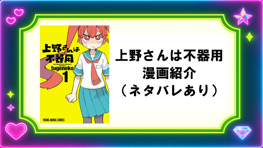 やっほ〜、レイラだよ💖天才発明×恋の空回りラブコメ!tugenekoセンセの『上野さんは不器用』を紹介するよ!