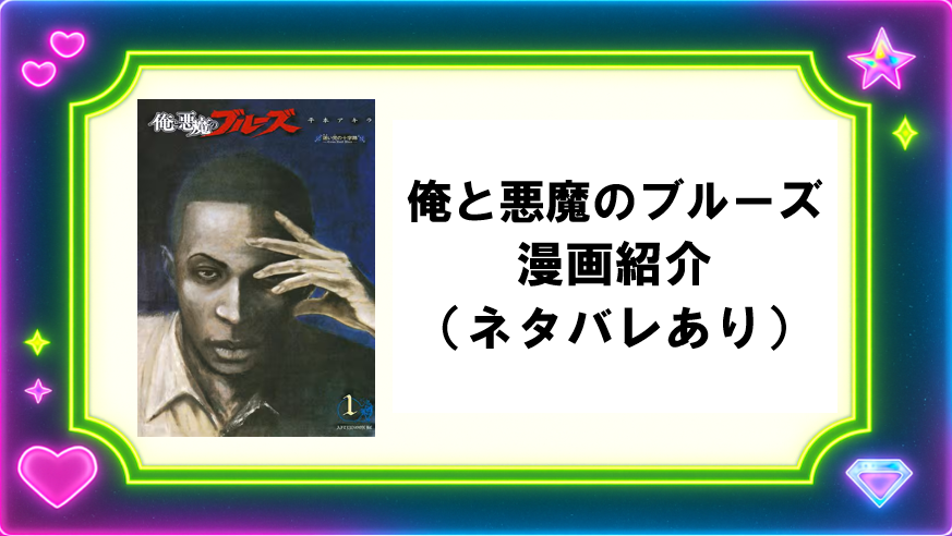 『俺と悪魔のブルーズ』は、平本アキラ(『アゴなしゲンとオレ物語』『監獄学園』)による本格サスペンス×ロードムービー。 『月刊アフタヌーン』で2004〜2008年に連載(その後一時再開を経て現在は休載)。ロバート・ジョンソンの“十字路伝説”を下敷きに、アメリカ南部の闇とブルーズを描く。既刊5巻/未完。