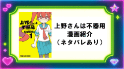 ラブコメ 『上野さんは不器用』のあらすじや見どころ紹介! 『上野さんは不器用』をネタバレ控えめに紹介。天才先輩の発明→鈍感後輩に空回りの連続がニヤける!あらすじ・見どころ・アニメ情報・お得に読むコツまで網羅。 2024.08.19 ラブコメ